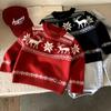 Venta al por mayor 2024 Europeo y Americano Nuevo Otoño e Invierno Ropa interior de punto base Retro para Niños y Niñas Suéter de punto de alce navideño