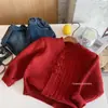 Suéter Rojo Bangcheng para Niños Invierno 2025 Nuevo Estilo Antiguo Estilo Año Nuevo Suéter Tejido Ropa de Invierno para Bebé Niña