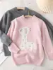 Suéter 100% Lana Pura para Niños Jacquard Rosa Suéter para Niños y Niñas Pulóver Engrosado Suéter Básico Tejido para Bebé