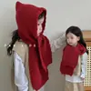 Gorro y bufanda cálidos de otoño e invierno todo en uno para niños y niñas, color liso, combinable, gorro tipo chal, gorro de lana tejido, invierno
