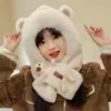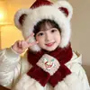 Conjunto de dos piezas de gorro y bufanda de oso de peluche para niños de otoño e invierno, bufanda cálida con forro polar, lindo gorro de peluche para bebé