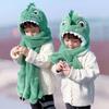 Sombrero de Felpa de Una Pieza de Dinosaurio para Niños en Otoño e Invierno, Bufanda Gruesa Linda para Niñas, Mascarilla de Tres Piezas para Niños, Protección contra el Viento y para las Orejas