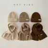Conjunto de Dos Piezas de Gorro y Bufanda para Niños Ins Coreano Etiqueta Pequeña Color Sólido Para Vestir Traje Cálido Invierno Bebé Gorro de Lana