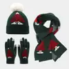 Conjunto de Gorro, Guantes y Bufanda para Niños, Gorro Cálido de Punto Engrosado de Invierno con Pompón, Venta al por Mayor Transfronteriza
