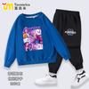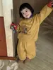 Traje para niños de estilo coreano nuevo de otoño e invierno, sudadera estampada de cuello redondo, pantalones casuales para niños y niñas, conjunto de dos piezas de dibujos animados