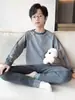 Conjunto de pijama de manga larga para niños de otoño, ropa para el hogar de algodón de bambú de manga larga, ropa cómoda y transpirable (Pedro Conejo)