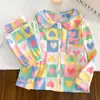 Oso de Café Negro 100% Algodón Dibujos Animados Pijama Infantil Set de Ropa para Casa Primavera Verano Nuevo Cárdigan Traje de Aire Acondicionado Dropshipping