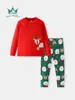 Otoño 2025 Nuevo Traje Infantil de Cuello Redondo Navidad Dibujos Animados Ciervo Bordado Ajustado Ropa para el Hogar Ropa Infantil
