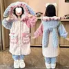 Pudding Haru Girls Bata de Noche de Forro Polar Coral 2025 Otoño e Invierno Nueva Bata con Capucha Gruesa y Cálida para Niños