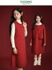 Traje de lana estilo retro hija de Amoy Town Navidad Año Nuevo para niñas otoño e invierno [lana de alpaca respetuosa con la piel] conjunto de dos piezas