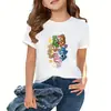 Camisetas de Manga Corta de Verano para Niños y Niñas, Estampado de Oso de Dibujos Animados Cuello Redondo Manga Media Modernas y Versátiles Nuevo Estilo Camisetas Manchadas Ropa de Verano
