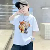 Nueva Ropa Infantil de Algodón Puro Transpirable de Venta Caliente, Manga Corta Holgada, Estilo Perezoso con Sentido del Diseño, Camiseta de Manga Corta Energética