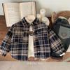 Camisa de invierno de estilo coreano para niños, abrigo grueso, camisa informal a cuadros con forro polar para bebés, niños y niñas, ropa para niños