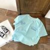 Camiseta de Verano de Manga Corta para Bebé Algodón Puro Clase A Niños y Niñas Letra Bordada Cuello Redondo Suelta Casual Top de Cuello Redondo para Verano