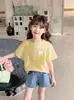 Linda Camiseta de Fiesta Niños Verano 2025 Nuevo Estilo Tops Niños Manga Corta Niñas Algodón Puro Manga Corta