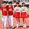 Camiseta de Manga Corta de Color para Niños Chinos Estudiantes de Primaria Estudiantes de Secundaria Actividad de Porristas Uniforme de Clase para Actuación Camiseta Roja