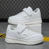 Zapatillas de baloncesto para niños, de cuero, de primavera y otoño, nuevas, blancas, con botones de malla y sonido de fricción.