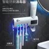 Esterilizador de cepillos de dientes inteligente transfronterizo, soporte para cepillos de dientes de pared sin perforaciones y con protección UV, exprimidor automático de pasta de dientes, fabricado directamente de fábrica.