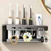 Caja de almacenamiento de cepillos de dientes de pared sin perforaciones, soporte multifuncional para cepillos de dientes de inducción, desinfección UV, exprimidor automático de pasta de dientes