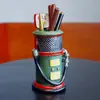 Caja de almacenamiento de escritorio Deli, portalápices de metal, estuche creativo de malla de hierro, portalápices con adornos vintage
