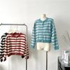 7034# Abrigo cárdigan de punto a rayas de color de contraste retro, toma real para mujer, entrega de 1 pieza, comercio exterior