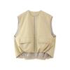 Chaqueta Chaleco de Capas sin Mangas con Cremallera y Cuello Redondo Estilo Japonés para Mujer, Nuevo Top Versátil Simple Holgado de Otoño
