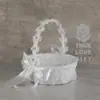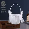 Cesta de flores para boda de estilo occidental, pequeña cesta decorativa de encaje blanco, nueva cesta de flores portátil desmontable para niña de las flores