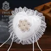 Suministros para bodas estilo occidental lazo de satén blanco almohada para anillos en forma de corazón encaje almohada romántica para anillos de boda fabricantes venta al por mayor