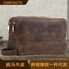 Bolsa de aseo de cuero Crazy Horse retro de comercio exterior, bolsa de almacenamiento multifuncional para exteriores, primera capa de piel de vaca, bolso de mano para hombre
