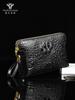 Bolso de Mano Yakiluo Grande con Clip para Hombre, Bolso Clutch con Cremallera a la Moda con Patrón de Cocodrilo en Relieve, Gran Capacidad, Bolso Clutch de Gama Alta