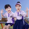 Verano 2023 nuevo jardín de infantes Ropa de jardín primer grado estudiante actividades padres e hijos uniforme deportivo morado traje de manga corta