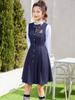 Traje de falda plisada estilo universitario para niños Camisa azul de manga larga para niña de primavera y otoño Vestido de actuación para niña de primaria
