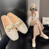 Medias Pantuflas de Cuero Genuino para Mujer con Suela Suave para Exteriores, Mocasines Perezosos Versátiles, Venta al por Mayor desde Fabricante, Sandalias para Mujer para Exteriores
