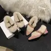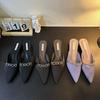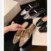 Aumento de Altura Interior Zapatillas de Media Punta de Cuero Genuino Escarchado Ropa de Exterior para Mujer Otoño e Invierno 2024 Nuevas Zapatillas Coreanas tipo Birkenstocks para Mujer