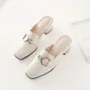 Zapatos Mueller de cuero genuino con puntera cubierta, pantuflas de media caña, primavera y verano 2023, nuevos zapatos de estilo coreano con punta cuadrada, zapatos de una sola capa, sandalias y pantuflas de piel de vaca con tacón grueso.