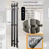 Toallero eléctrico de acero inoxidable con calefacción de fibra de carbono y pantalla digital inteligente para baño o casa.