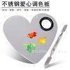 Paleta de colores de acero inoxidable con forma de corazón para maquillaje de uñas, herramientas de maquillaje para maquilladores, venta al por mayor.