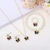 Conjunto de Joias Borboleta de Pérola para Moda Transfronteiriça Borboleta com Gotejamento de Óleo Pulseira Brincos Colar Joias para Meninas Venda por Atacado