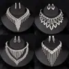 Conjunto de Colar e Brincos Luxuoso Elegante Europeu e Americano Joias com Franjas Totalmente de Diamante para Vestido de Banquete Moda Versátil Joias para Noiva
