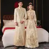 Nuevo Estilo Vestido Xiuhe Tocados Vestido Estilo Chino Vestido de Novio Champaña Chaqueta Ajustada para Hombre Dragón y Fénix Show Kimono Talla Fija Dorado