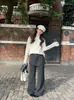 Pantalones grises de pierna ancha estrechos para mujer primavera y otoño cintura alta caída de alta calidad rectos tipo mopa pantalones de traje casual pequeño
