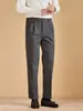 Pantalones de Lana para Otoño e Invierno para Negocios y Desplazamientos Rectos 2024 Marca Pantalones Casuales para Hombre Pantalones Tejidos Lijados Elásticos