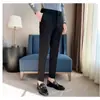 Pantalones de traje negros pequeños para hombre, hasta los tobillos, rectos, ajustados, de corte pequeño, informales, estilo coreano, modernos, para hombre.