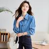 Foto Real de Camisa de Mezclilla Estilo Vintage Hong Kong con Hombros Normales, Diseño Otoño 2026, Camisa de Manga Larga para Personas Pequeñas, Top para Superponer
