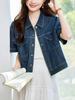 Chamarra Corta de Mezclilla Estilo Capullo de Algodón para Mujer, Manga Corta, Verano 2026, Top Petite, Camisa Retro Artística