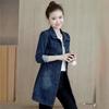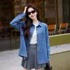 2026 Toma Real Chaqueta de Mezclilla Estilo Coreano para Mujer Tallas Grandes Ajuste Delgado Gabardina de Longitud Media Top de Mezclilla de Manga Larga