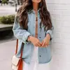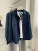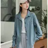 26 Primavera Retro Algodón Tencel Azul Bolsillo Doble Puntada de Contraste Camisa de Mezclilla para Mujer Holgada Estilo Coreano Camisa Chaqueta con Solapa