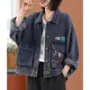 Chamarra de mezclilla bordada retro sin rizos para mujer primavera 2025 nuevo diseño suelto top de manga larga