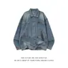 Otoño 2025 Nuevo Nicho Americano Calle Lavada Desgastada Azul Multi-Bolsillo Cuello Solapa Chaqueta Ropa Exterior Tendencia para Hombres y Mujeres