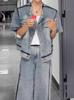 Yishengyimei Retro Americano Broche de Langosta cleanfit Corto Ancho Cuadrado Color Denim Crudo Chaqueta de Mezclilla Chaqueta Top